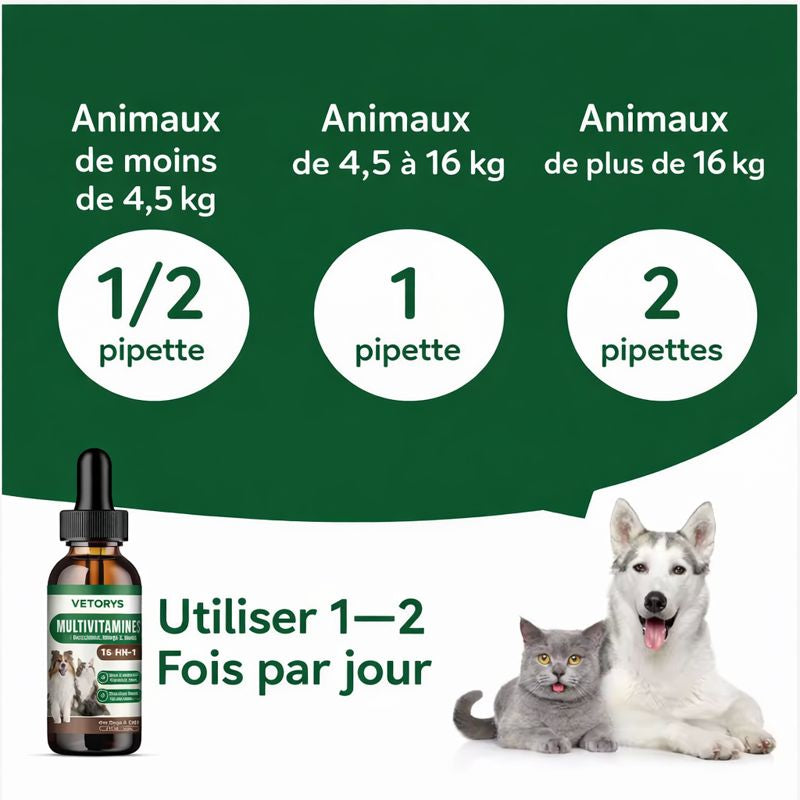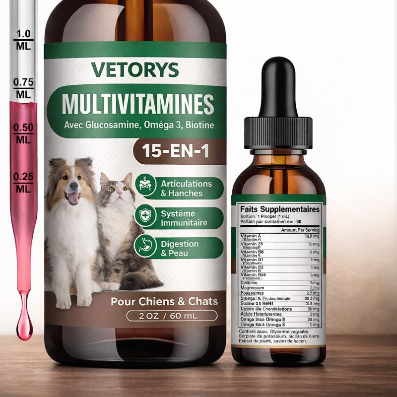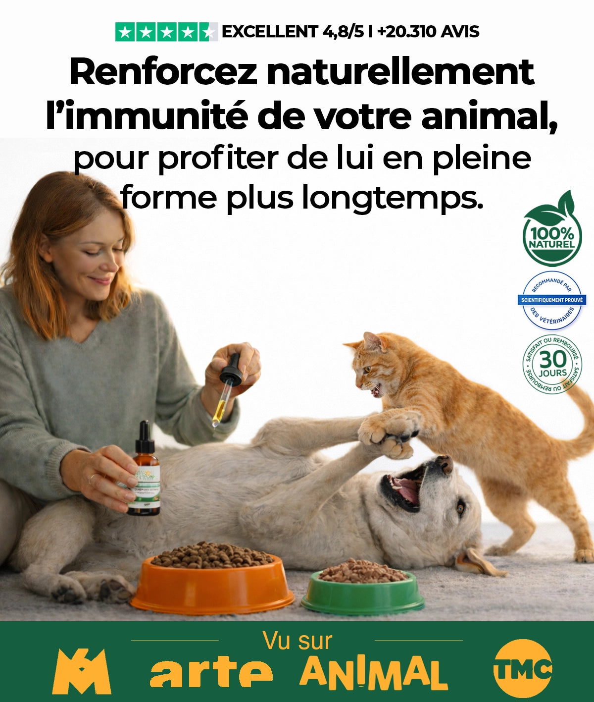 Oslo avait souvent des coups de fatigue sans raison. Avec Vetorys Immunité, il garde une énergie plus régulière. C’est devenu notre petit geste quotidien pour l’aider à se défendre naturellement.